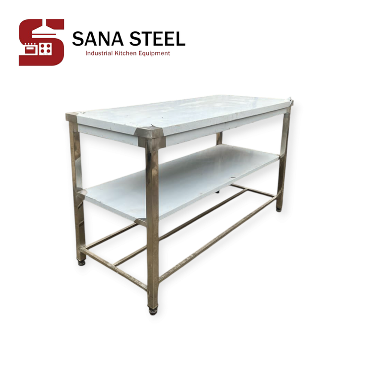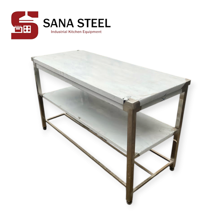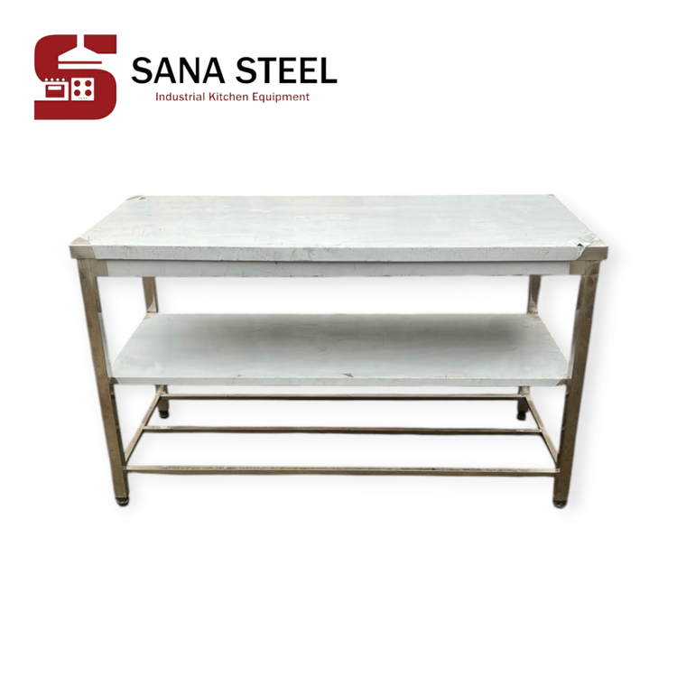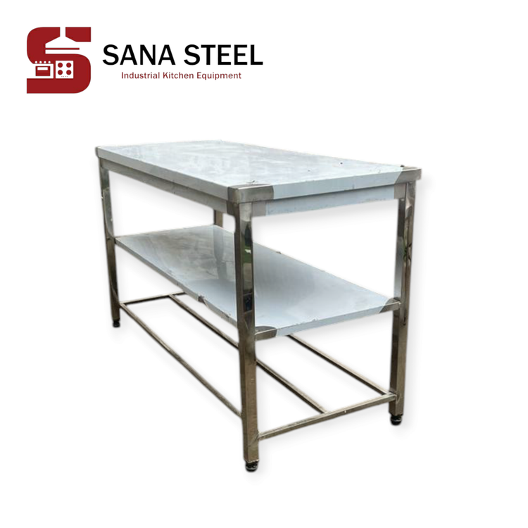 میز کار ۱۵۰×۶۰ با یک طبقه سنا استیل